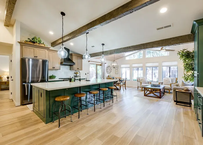 The 177 m^2 Stylish Flagstaff Hideaway With Private Hot Tub provides good lodging in Flagstaff. This venue is composed of 3 bedrooms, 2 bathrooms and a fully furnished kitchen.